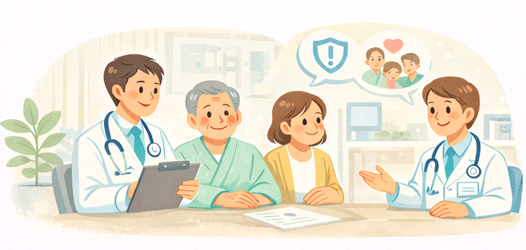 緊急時の判断を円滑に行うため、患者さんご本人以外に病状説明を受けることができる方を、あらかじめご家族など信頼できる方の中から決めておいてください。